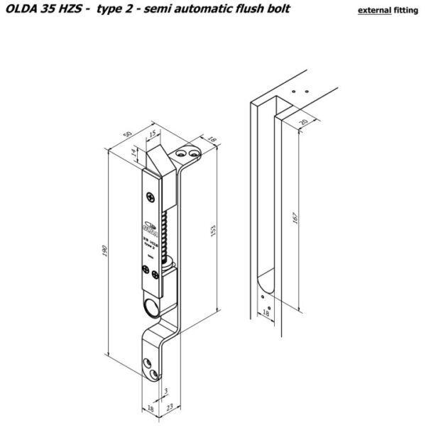 Olda semi automatische kantschuif type 35 voor stalen/aluminium/houten deuren type 2 staal verzinkt