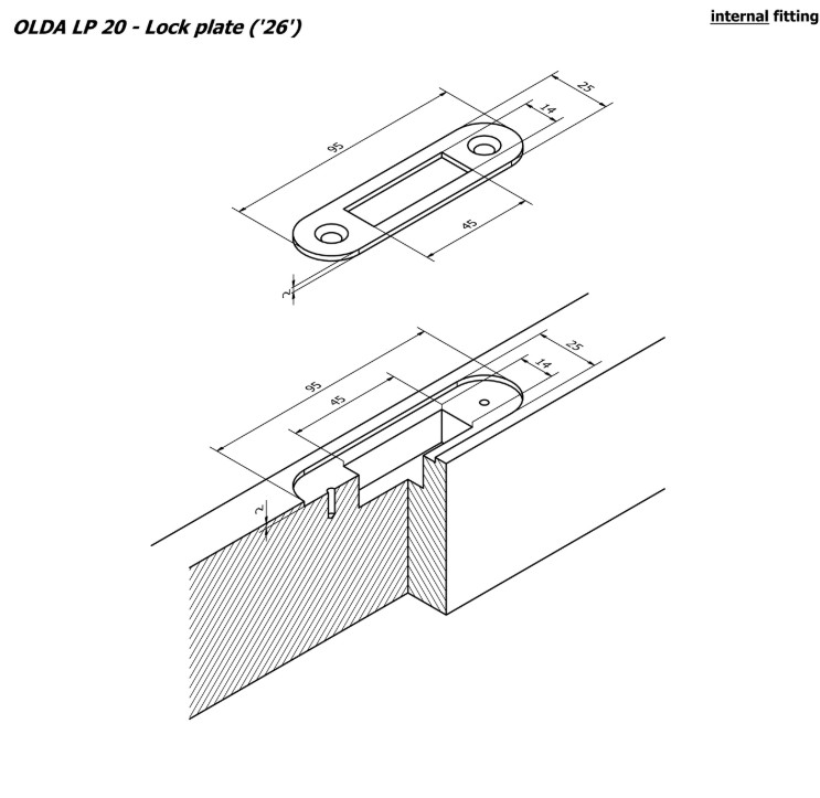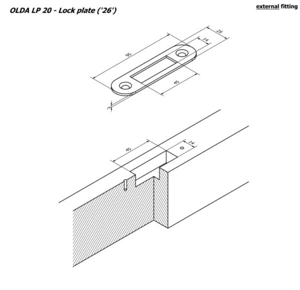 Olda sluitplaat type LP20 tbv automatische kantschuif 26 HZA voor stalen/aluminium deuren staal verzinkt
