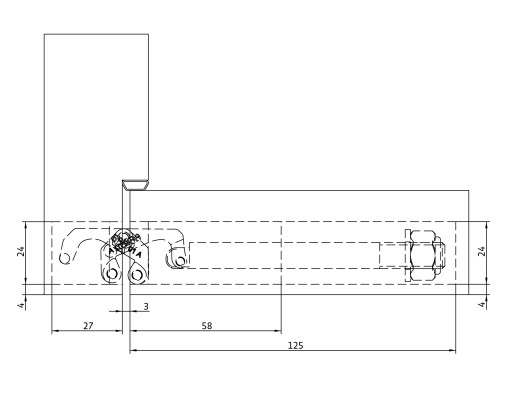 Onzichtbaar scharnier 110×24 mm met zelfsluiting voor deuren tot 60 kg mat nikkel