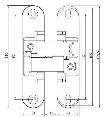 Onzichtbaar scharnier 3D verstelbaar 110×24 mm met zelfsluitend mechanisme en rem voor deuren tot 45 kg mat nikkel