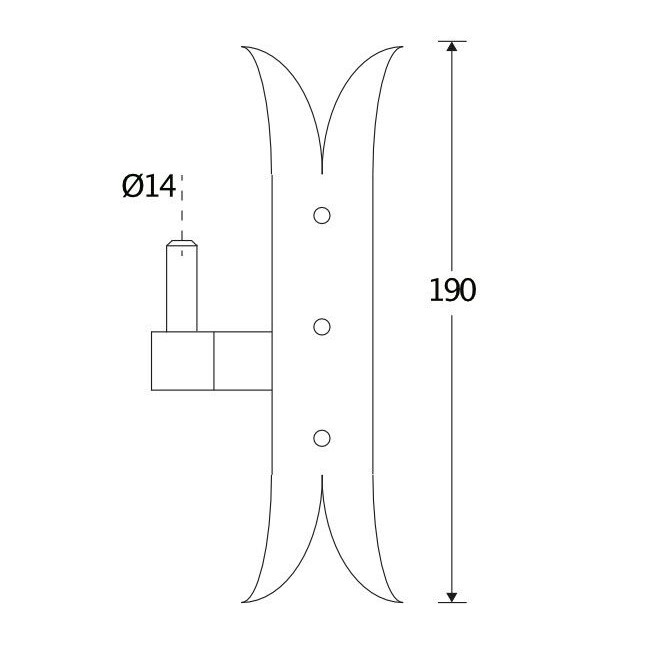 Plaatduim DIN rechts zwaluwstaart 190mm ijzer zwart.