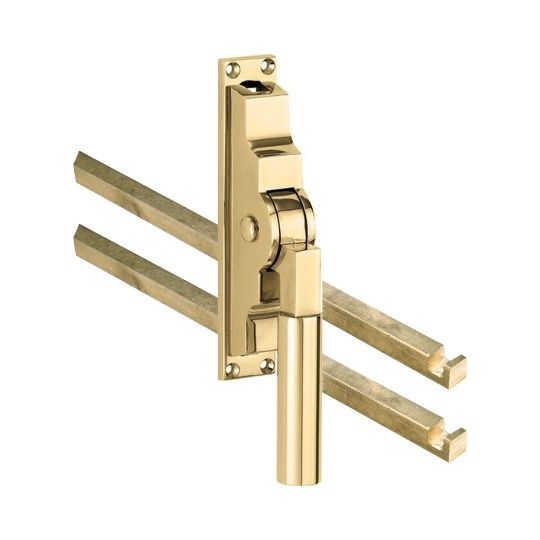 Pomp-espagnolet Bauhaus messing ongelakt inclusief 2 stangen