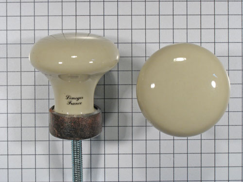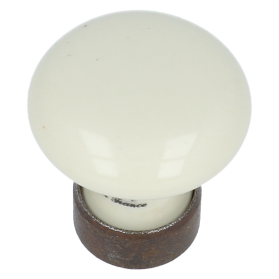 Porseleinen knop ivoor 30 mm met ijzer geroeste voet