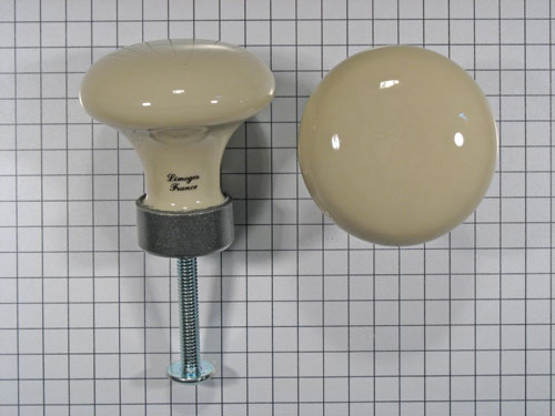 Porseleinen knop ivoor 35 mm met blank ijzeren voet