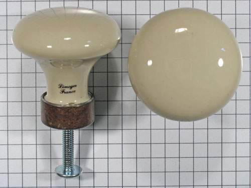 Porseleinen knop ivoor 35 mm met ijzer geroeste voet