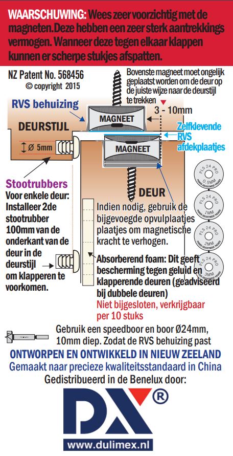 Precies wat ik zocht om een deurtje te kunnen sluiten zonder uitstekend sluitingsmateriaal op de post. Mooi glad weggewerkt in de post. Makkelijk te monteren. Magneten zijn niet heel sterk, dus voor een grote / zware deur te licht, maar voor een kleine / lichte deur prima.