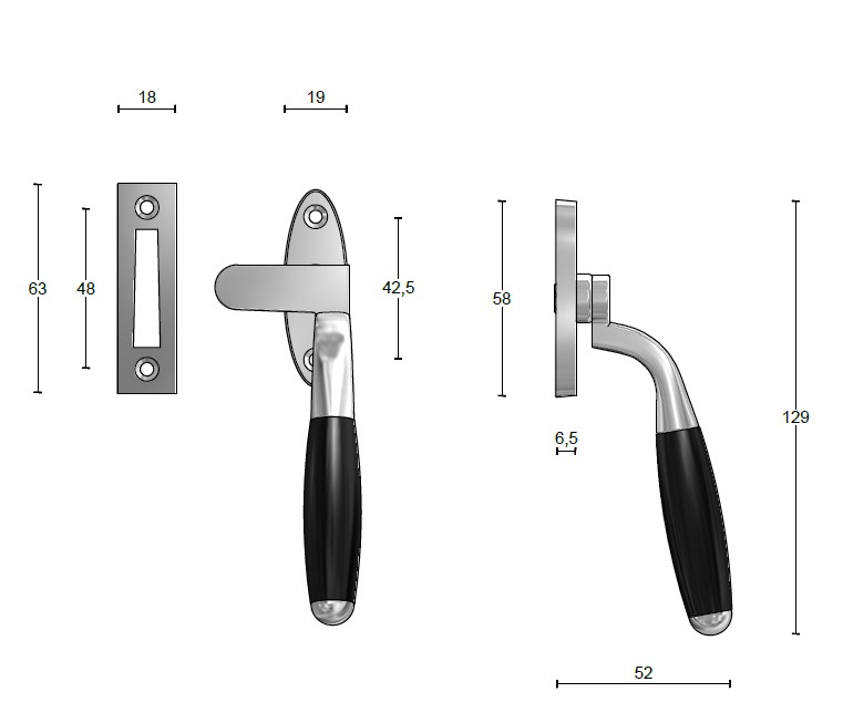 Dit is een massief raamboompje ten behoeve van naar buitendraaiend raam inclusief contraplaatje. (Voor naar binnendraaiend raam kunt u de sluithaak kopen die bij de gerelateerde producten staat)