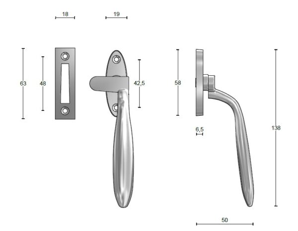 Dit is een massief raamboompje ten behoeve van naar buitendraaiend raam inclusief contraplaatje. (Voor naar binnendraaiend raam kunt u de sluithaak kopen die bij de gerelateerde producten staat)