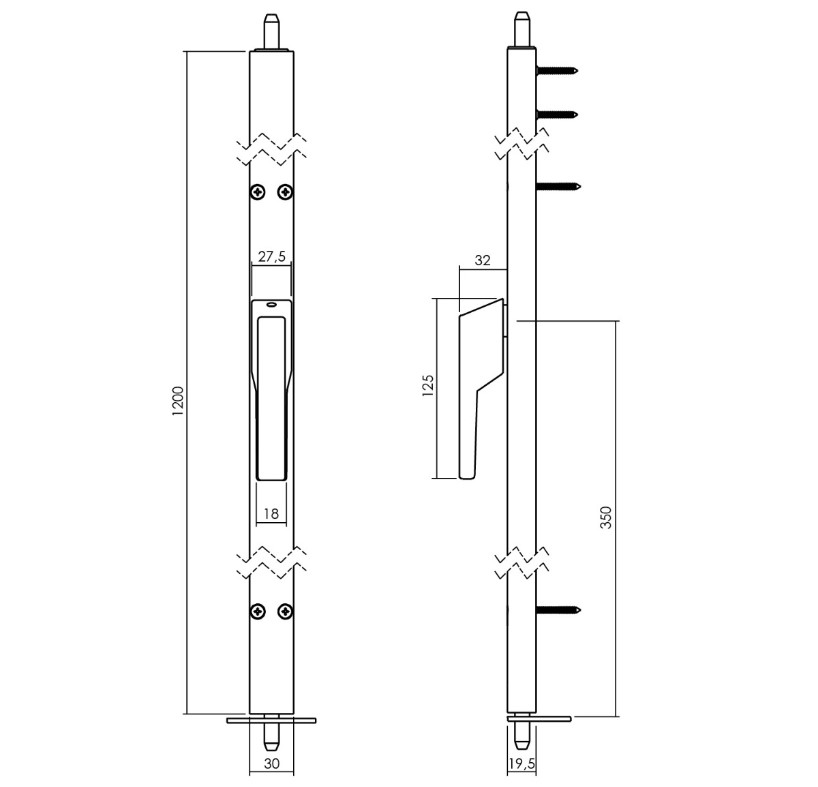 Met een Intersteel espagnolet kunt u met één handeling het raam aan de boven- en onderzijde vergrendelen. Deze raamespagnolet heeft een lengte van 1200mm en is voorzien van een kruk op 350mm, waardoor de smalle espagnolet tevens voldoet aan de eisen van WoonKeur. Door de aluminium greep 180 graden naar rechts te draaien komen de ø10 mm massieve roestvast stalen stangkoppen 28 mm naar buiten. De meegeleverde rvs sluitplaten van deze espagnolet zijn 3mm dik en geschikt voor zowel naar binnen- als buitendraaiende ramen. De smalle kast van deze espagnolet is uitgevoerd in aluminium en het binnenwerk in verzinkt staal. Het op lengte maken van deze espagnolet kan eenvoudig door de bovenzijde in te korten tot maximaal 25 cm boven de kruk. De raamespagnolet wordt per stuk geleverd inclusief sluitplaten, bevestigingsmateriaal en een uitgebreide montagehandleiding.
