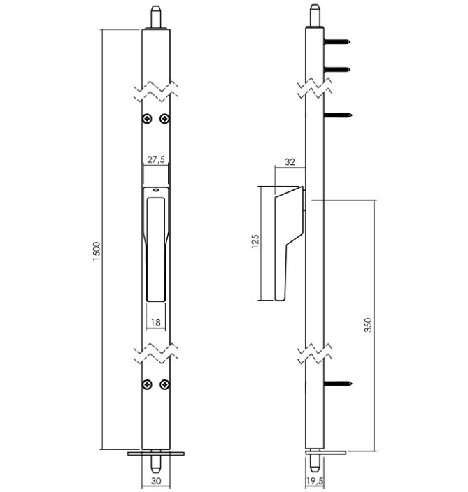 Met een Intersteel espagnolet kunt u met één handeling het raam aan de boven- en onderzijde vergrendelen. Deze raamespagnolet heeft een lengte van 1500mm en is voorzien van een kruk op 350mm, waardoor de smalle espagnolet tevens voldoet aan de eisen van WoonKeur. Door de aluminium witte greep 180 graden naar links te draaien komen de ø10 mm massieve roestvast stalen stangkoppen 28 mm naar buiten. De meegeleverde rvs sluitplaten van deze espagnolet zijn 3mm dik en geschikt voor zowel naar binnen- als buitendraaiende ramen. De smalle kast van deze espagnolet is uitgevoerd in aluminium wit en het binnenwerk in verzinkt staal. Het op lengte maken van deze espagnolet kan eenvoudig door de bovenzijde in te korten tot maximaal 25 cm boven de kruk. De raamespagnolet wordt per stuk geleverd inclusief sluitplaten, bevestigingsmateriaal en een uitgebreide montagehandleiding.