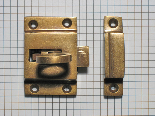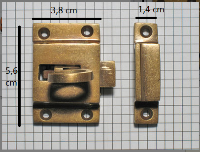 Raamknip, brons antiek. Foto is genomen op ruitjes van 5 x 5 mm.