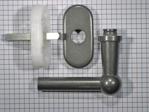 Raamkruk L, draai kiep, ijzer blank. Foto is genomen op ruitjes van 5 x 5 mm.