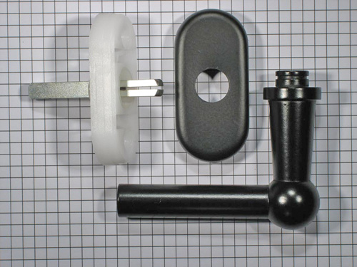 Raamkruk L, draai kiep, ijzer zwart. Foto is genomen op ruitjes van 5 x 5 mm.