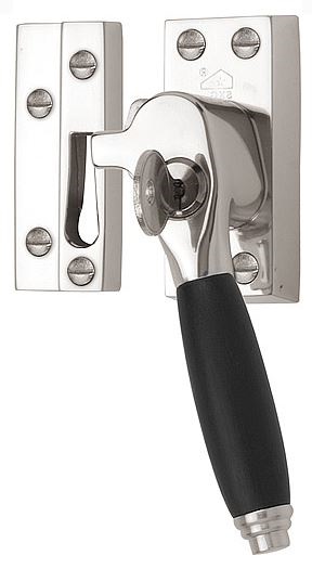 Deze raamsluiting is van Formani uit de serie TIMELESS, 1934 Stokstraat. Het materiaal is glans nikkel en ebbenhout. De raamsluiting is afsluitbaar SKG1.