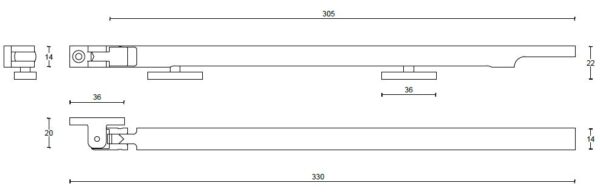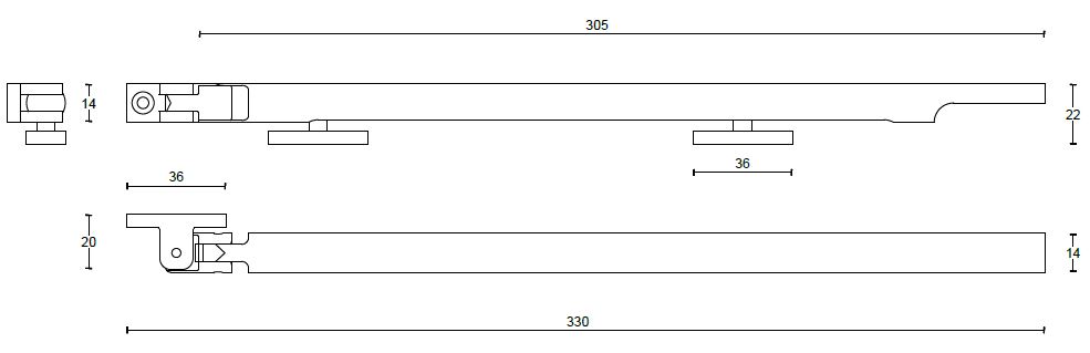 Dit is een massieve raamuitzetter met twee stelpennen inclusief geleiderail.