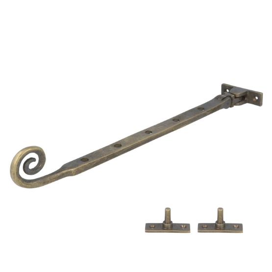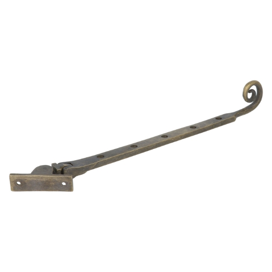 Raamuitzetter met krul, 29 cm, brons antiek. Foto is genomen op ruitjes van 5 x 5 mm.