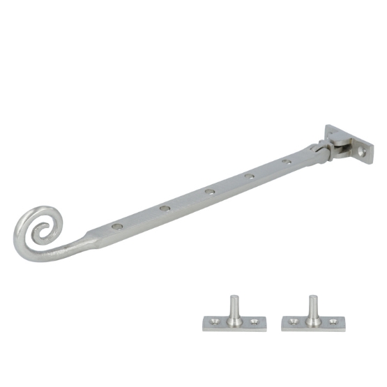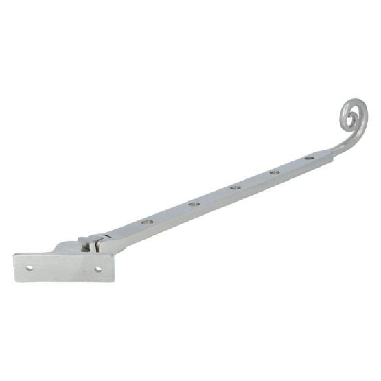 Raamuitzetter met krul, 29 cm, nikkel mat. Foto is genomen op ruitjes van 5 x 5 mm.