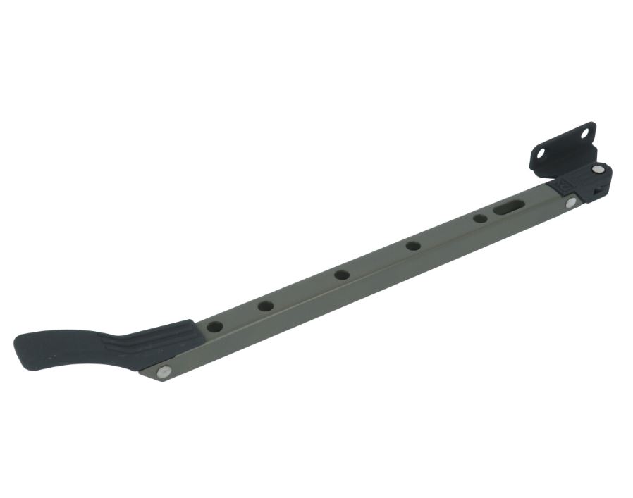 Deze verstelbare raamuitzetter is geschikt voor naar buitendraaiende houten of kunststof ramen met een minimale breedte van 400 mm. De raamuitzetter kan met een variabele hoek in 5 verschillende standen worden vast gezet. aan de onderzijde van deze raamuitzetter zorgt een omgeslage rand er voor dat het raam bij storm niet kan openklappen. Ook kan de raamuitzetter van buiten af niet van de stelpen gelicht worden waardoor het raam niet vrij geopend kan worden. Voor nog meer veiligheid en te voorkomen dat kleine kinderen het raam kunnen openen kunt u de raamuitzetter voorzien van een klein cilinderslotje (zie gerelateerde artikelen).