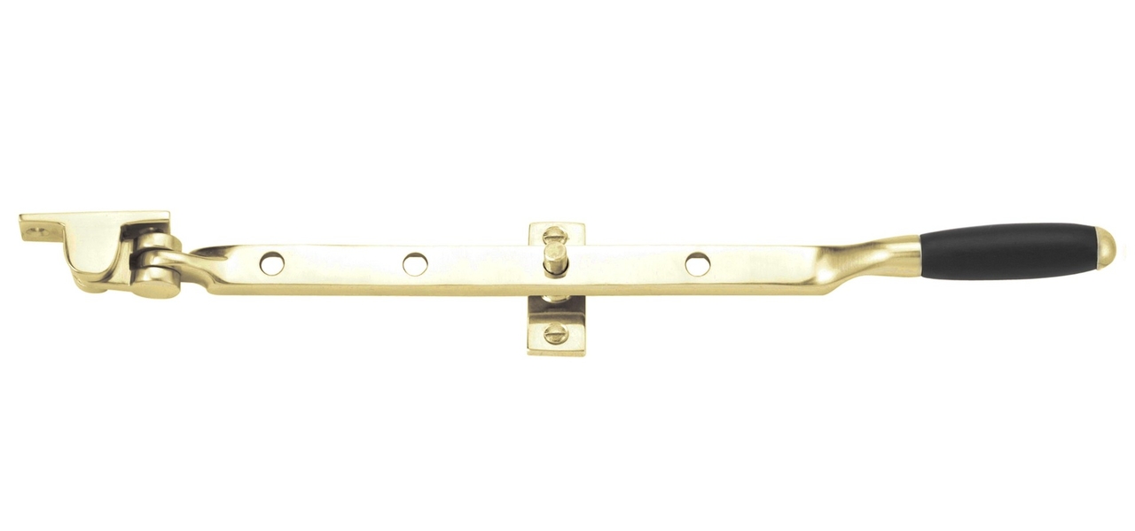 Deze raamuitzetter is van Formani uit de serie TIMELESS, 1932. Het materiaal is messing ongelakt en ebbenhout. Massieve raamuitzetter met twee stelpennen.