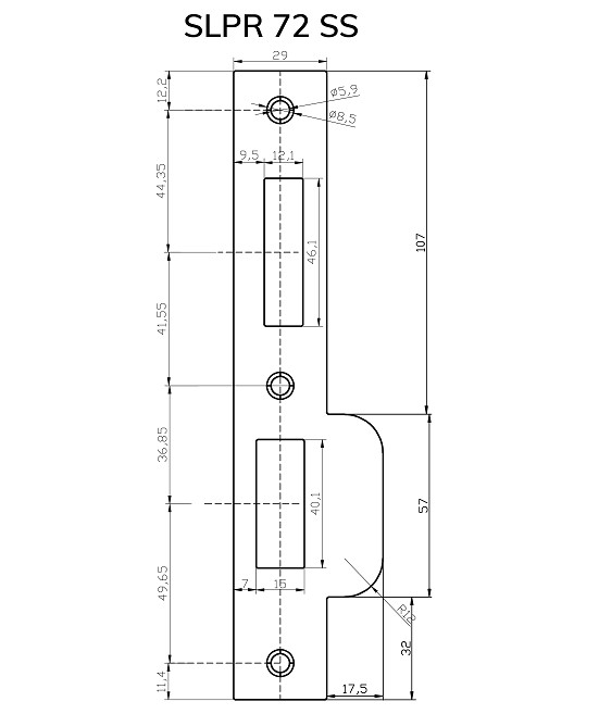 Rvs sluitplaat rechte hoeken t.b.v. veiligheidsinsteekslot PC72