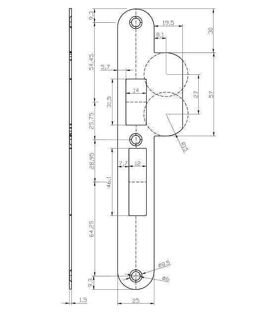 Rvs sluitplaat ronde hoeken t.b.v. veiligheidsinsteekhaakslot