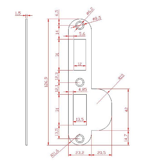 Rvs sluitplaat ronde hoeken t.b.v. veiligheidsinsteekslot PC55