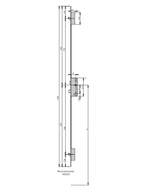 De meerpuntssluiting is geschikt voor de volgende deurhoogte: 2011-2250 mm (renovatieraster).