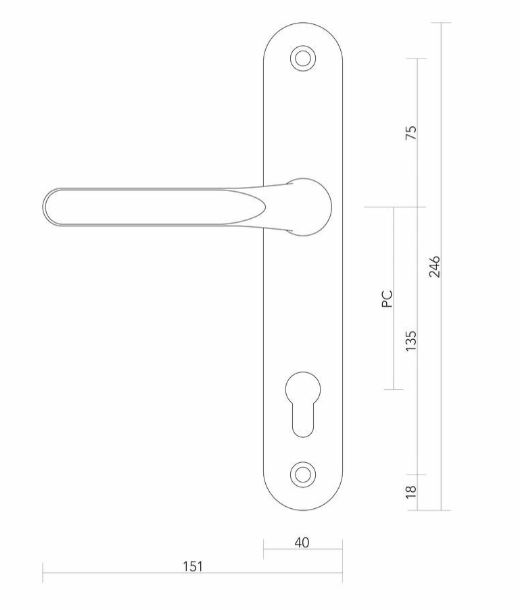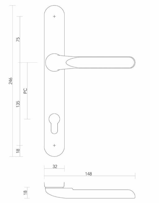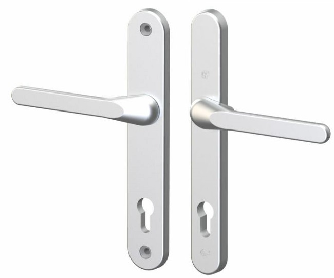 Deze set heeft aan de buitenkant en aan de binnenkant een heel vlakke deurklink (zie maattekening). Dat is speciaal voor rolluiken.
