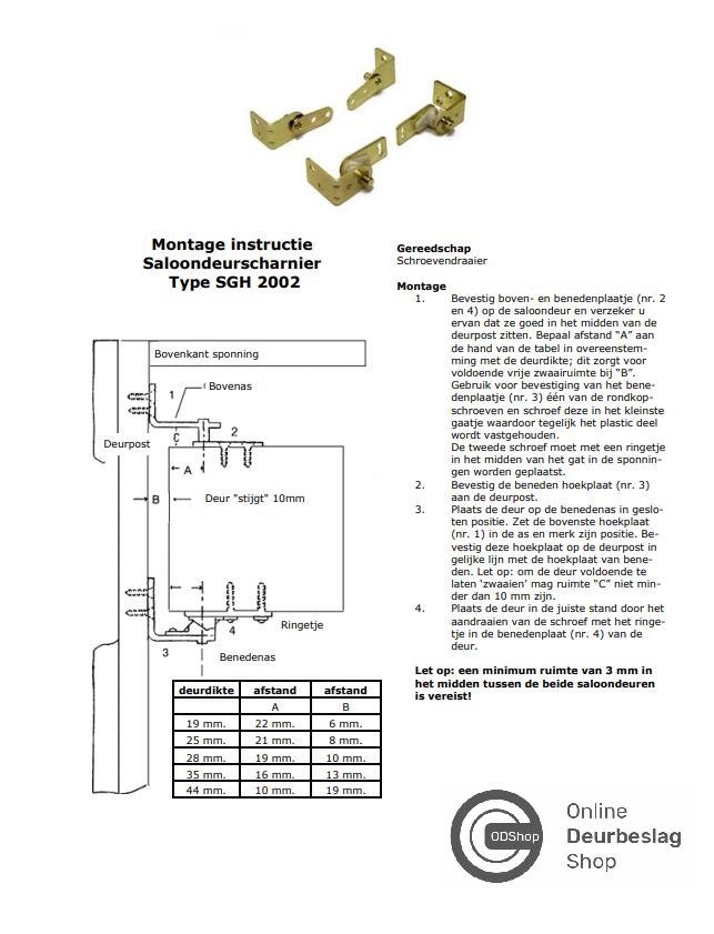 Een deur openen zonder je handen te gebruiken? Saloondeuren zijn de ideale afscheiding van een ruimte in bijvoorbeeld horeca of winkels. Kenmerkend van deze klapdeuren is dat ze zowel naar binnen als naar buiten scharnieren. Daarom heb je voor het afhangen deze speciale scharnieren nodig. Ze worden geleverd als set voor twee deurtjes inclusief bevestigingsmateriaal. messing heeft een klassieke uitstraling en past daarom goed bij antieke meubels.
