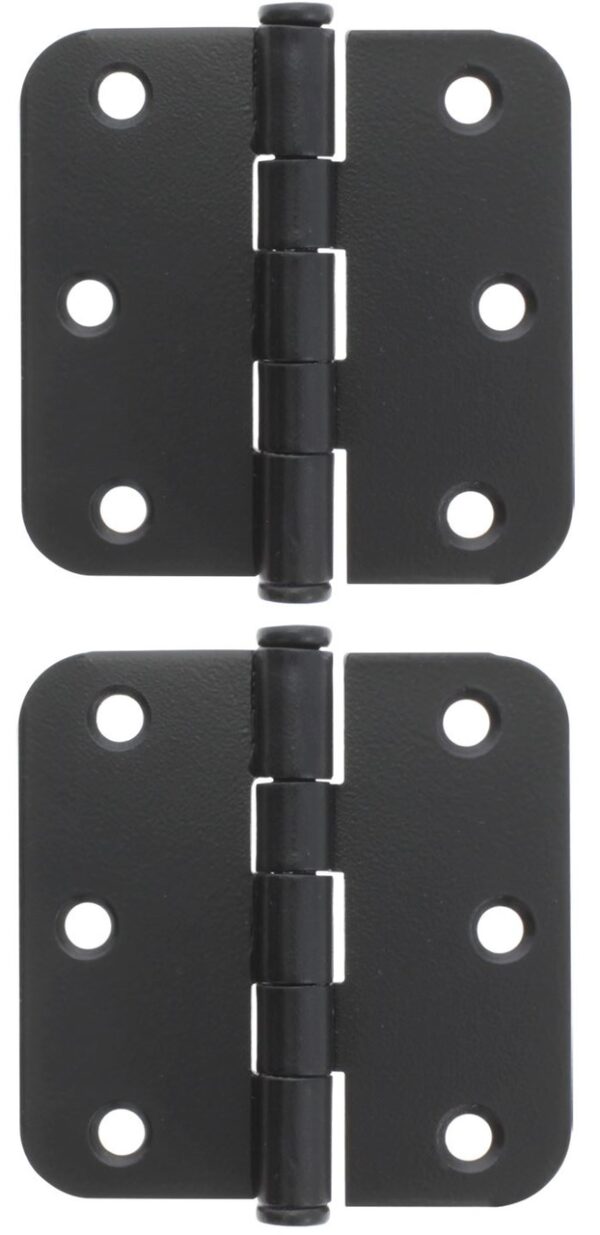 Dit scharnier heeft ronde hoeken en een losse pen. De maat van dit scharnier is 76 x 76 mm en de dikte 2.4 mm. Het materiaal is staal zwart gelakt. De scharnieren kunnen niet buiten.