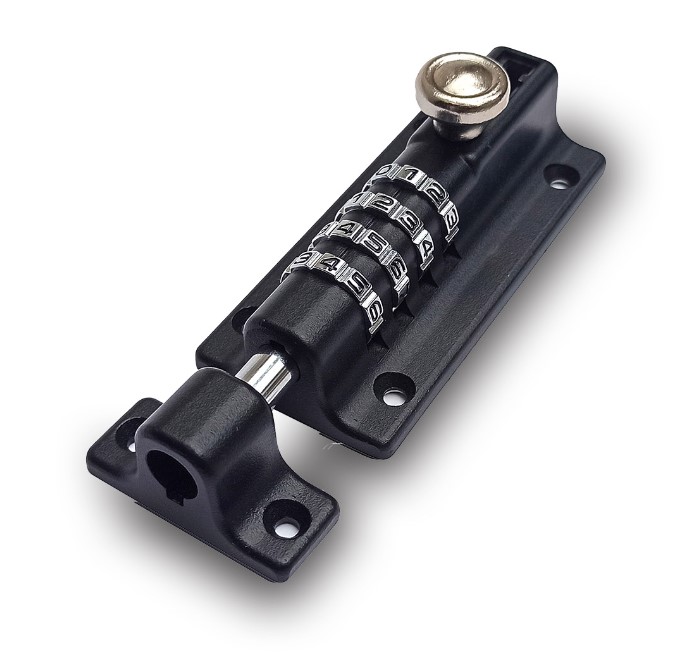 Deze zwart gelakte aluminium schuifgrendel met cijferslot is ideaal voor toepassing in en rondom het huis. met 10.000 mogelijke codes wordt een deur, hek of poort eenvoudig voorzien van een veilige vergrendeling. Deze grendel is met demeegeleverde anti-inbraakschroeven te bevestigen op houten ondergronden en vormt een mooie aanvulling op jouw assortiment.