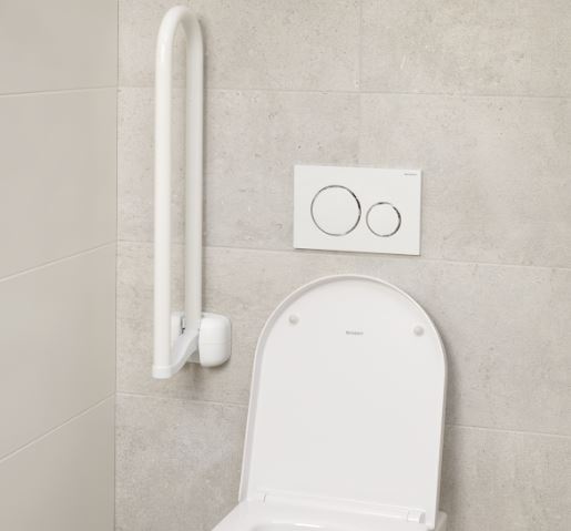 De beugel kan omhoog geklapt worden en blijft door de klemfunctie ook omhoog staan. Daardoor zit deze niet in de weg wanneer de toiletbeugel niet nodig is. Ook is het mogelijk om in de wandbeugel een houder voor een toiletrol te plaatsen, zodat deze gemakkelijk bereikbaar is op het toilet.