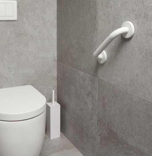 De SecuCare wandbeugel staal voorkomt val-ongelukken. Hij heeft een brede ronde greep van 32 mm, die een goede grip geeft. Greep vervaardigd van staal, roestwerend, voorzien van epoxycoating en kan zowel binnen als buiten (bij de voordeur) toegepast worden. De schroefplaat wordt onzichtbaar afgedekt door de rozet. Montageflens en afdekrozet zijn beide van RVS. Wordt geleverd inclusief montagemateriaal.