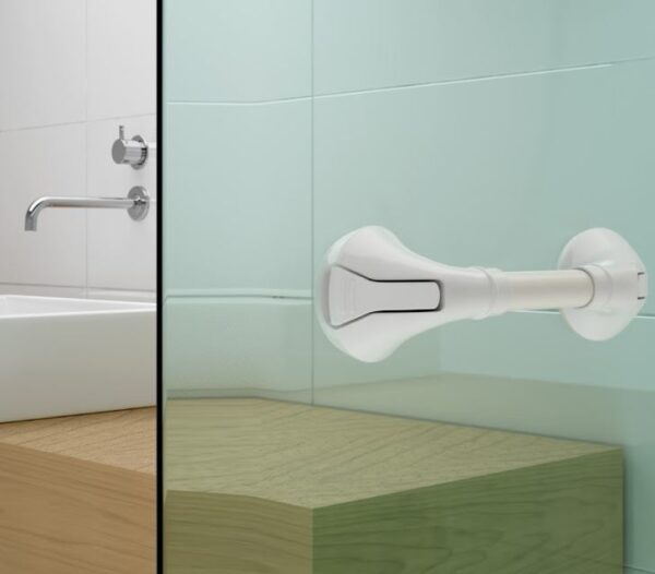 Het grote voordeel van deze muurbeugel is dat schroeven niet nodig is. De wandbeugel heeft een uitstekende, blijvende zuigkracht door het grote zuignap oppervlak. Ideaal is verder dat de beugel ook zeer geschikt is voor glazen douche-wanden.