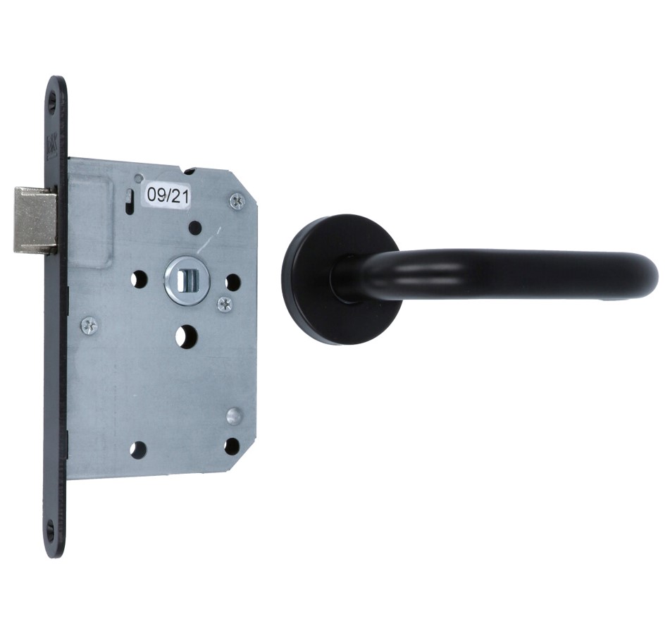 Set binnendeurbeslag deurklink model 3RX op rozet + loopslot zwart