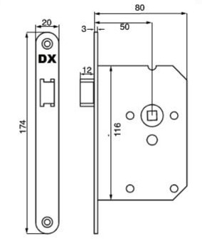 Complete set van binnendeurbeslag. De set bestaat uit een Loopslot met zwarte voorplaat, rechthoekige sluitplaat, patentboutjes en deurklink model 3RX op rozet.
