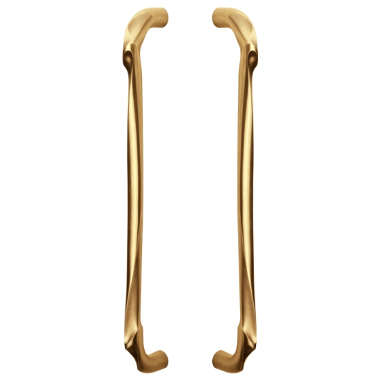 Deze massieve deurgreep is van Formani uit de serie ELEEZ. Het materiaal is rvs met een PVD mat gouden coating. Â Bij deze deurgreep wordt een bevestigingsset geleverd voor paarsgewijze montage op houten of aluminium deuren. Dat wil zeggen dat deze deurgrepen op 1 deur recht tegenover elkaar gemonteerd word.