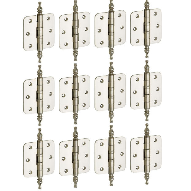 Set van 12 kogellagerscharnieren 89×89 ronde hoek vaas glans nikkel