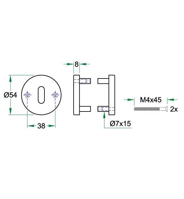 Blinde plaatjes Ø 54×8 mm op stalen onderconstructie.