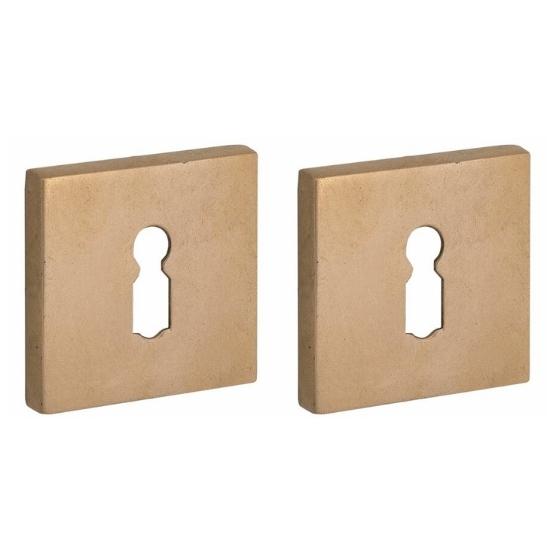 Set van twee sleutelplaatjes Bauhaus verdekt messing antiek
