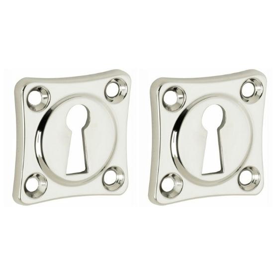 Set van twee sleutelplaatjes vierkant 38 mm glans nikkel
