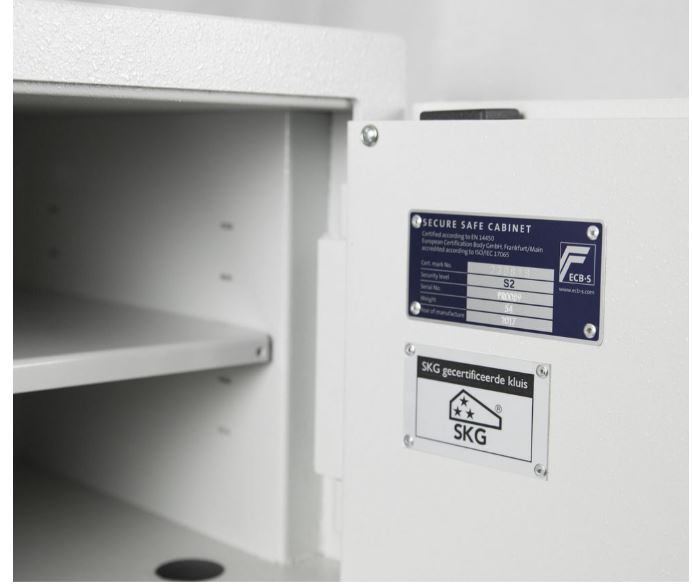 ECB-S gecertificeerde inbraakwerendheid volgens EN 14450 S2 (indicatie waardeberging geld / kostbaarheden : € 5.000 / € 9.000)