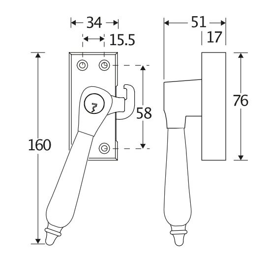 SKG Raamsluiting Met sluitplaat rechts Antique ebben messing gelakt