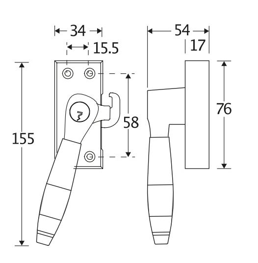 SKG Raamsluiting Met sluitplaat rechts Bonton bubinga messing ongelakt