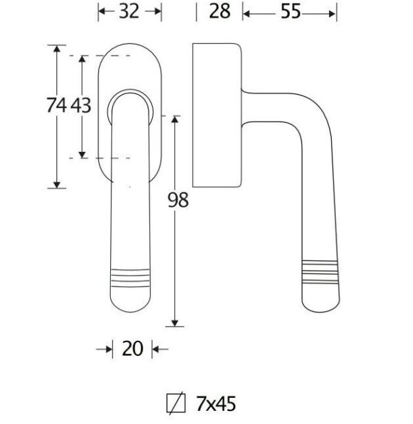 De maten van deze raamsluiting staan in de afbeelding.