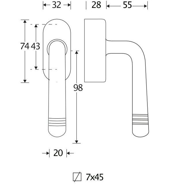 De maten van deze raamsluiting staan in de afbeelding