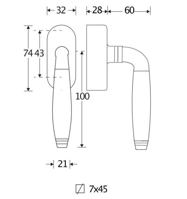 De maten van deze raamsluiting staan in de afbeelding.