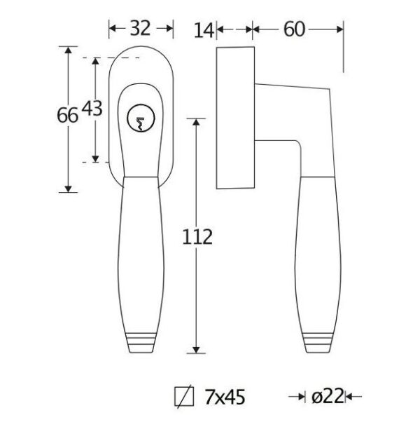 De maten van deze raamsluiting staan in de afbeelding.