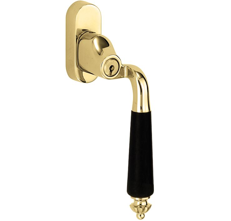 SKG2 Draaikiepgarnituur afsluitbaar Nouveau ebben/Smal rechts messing gelakt