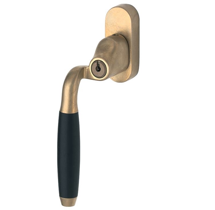 SKG2 Draaikiepgarnituur afsluitbaar Ton ebben/Smal links messing antiek